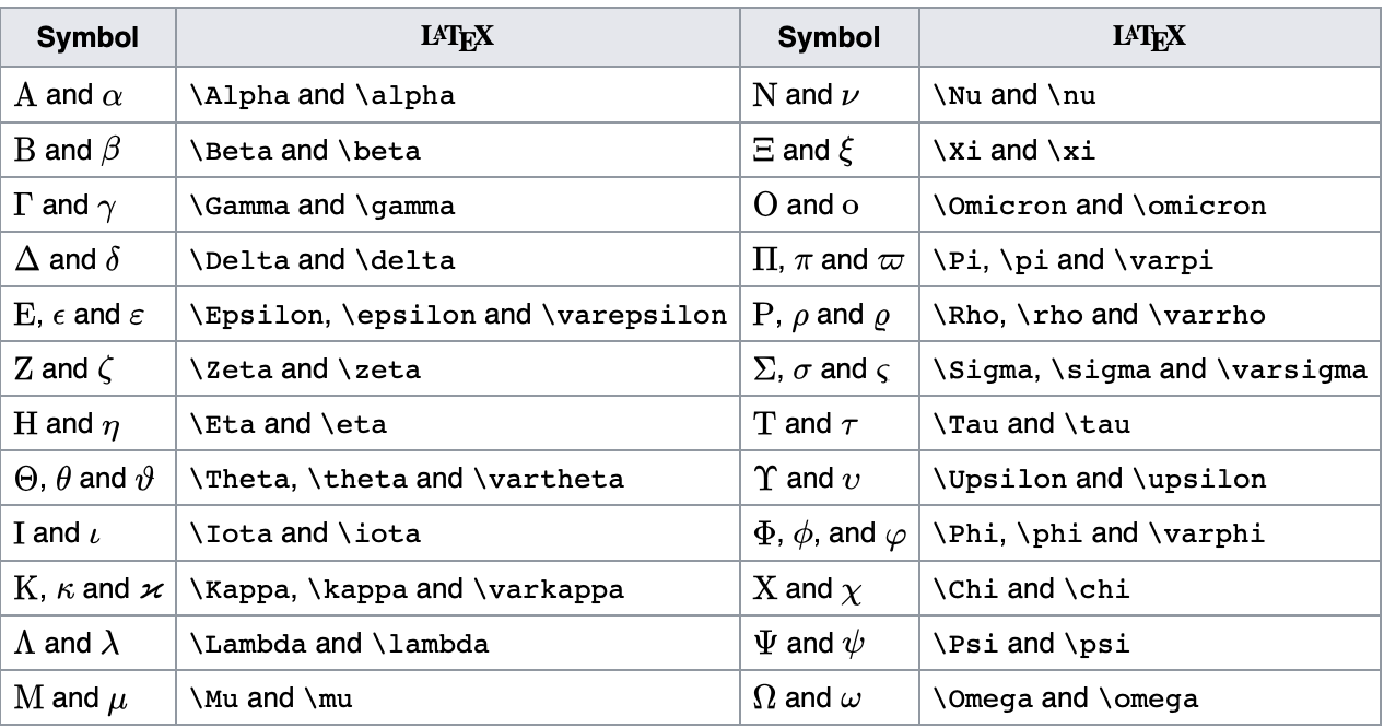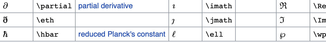 다음은 https://oeis.org/wiki/List_of_LaTeX_mathematical_symbols 에서 가져온 주로 쓰이는 기호입니다.