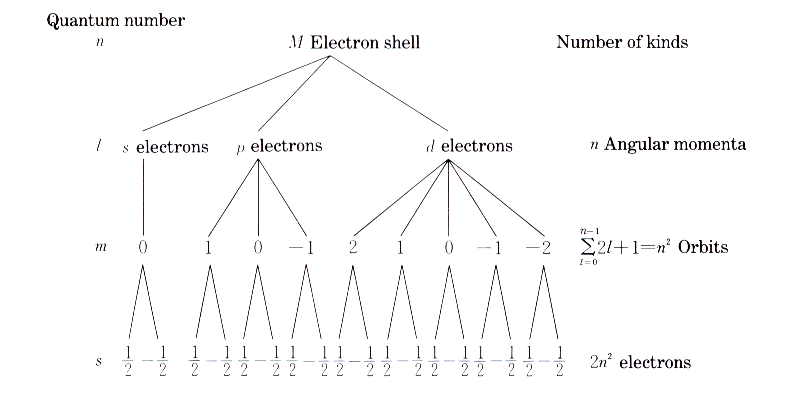 --> 원자 핵으로부터 전자의 거리(전자 껍질)의 양자화를 나타내는 주양자수 (Principal orbital) n