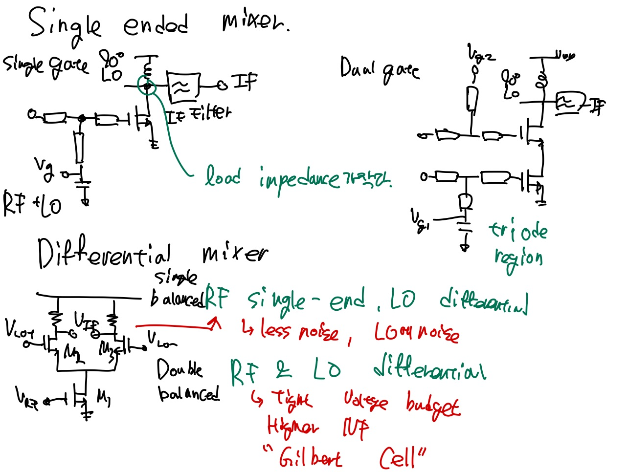 Single ended와 differetial도 뭐가 좋다가 아니라 용도에 맞게 사용하면 됩니다, 굳이 장단점을 논의한다면 differential이 LO signal이 안정적이고(noise가 적다) 여러 amplifier와 같은 용도를 사용할 수 있습니다. 참고로 double-balanced mixer는 Gilbert Cell이라 합니다.