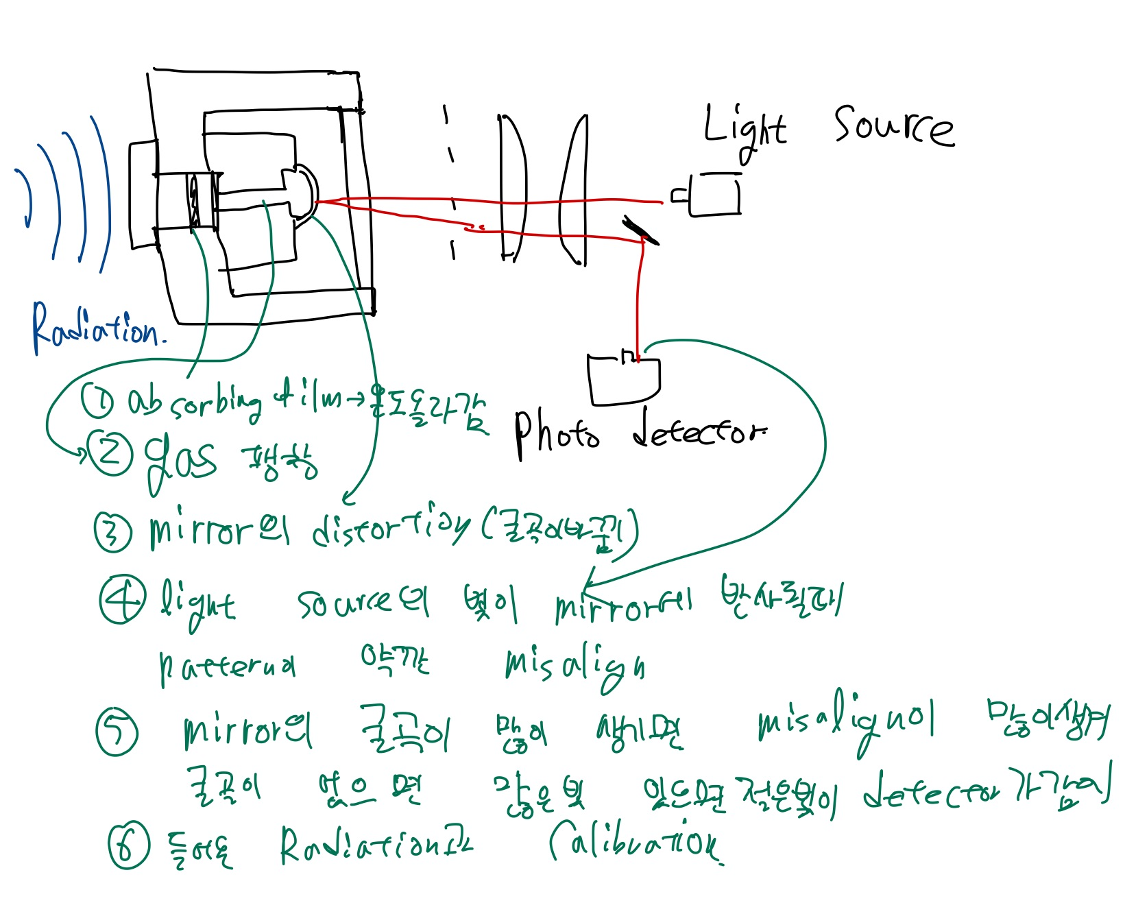 이는 FT-IR에 쓰이는 Detector로 유명한 detector로 기체에다가 Radiation을 했을때 온도에 따른 렌즈의 굴곡이 바뀌어 optical하게 검출하는 방법입니다.