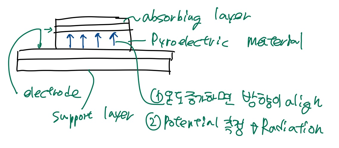 온도가 안정되면 dipole이 사라지고 potential도 사라지는 것을 이용해 modulation하여 읽습니다. 이떄 주변 온도 변화시 잘못 측정할 수 있어서 shield하여 Radiation이 안들어가는 dummy를 만들어 비교해서 측정합니다.