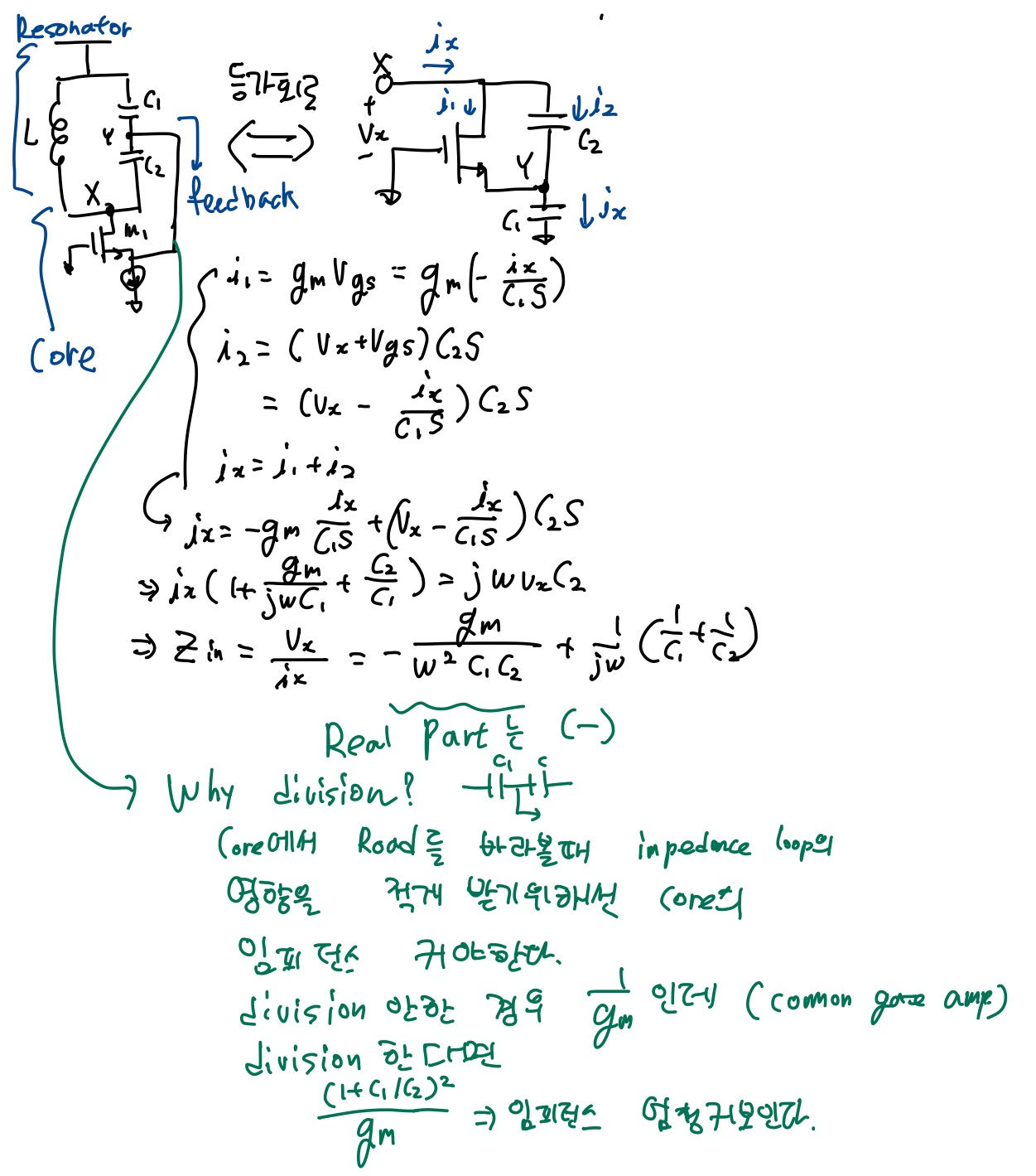 이는 transistor의 passive 성질을 이용할 수도 있는 오실레이터로 직렬 capacitor의 dividing에서 가져가는 것입니다.