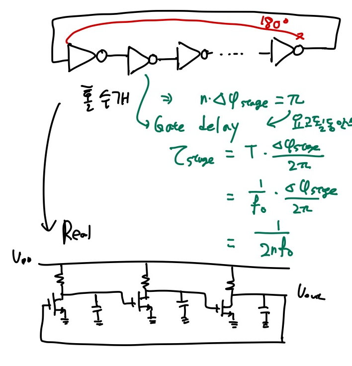 다음은 Ring Oscillator입니다. Ring Oscillator는 전통적으로 2port view로 보는것이 편한데, 여기서는 Negative Resistance를 이용하는 것이 아닌 Gate Delay를 이용해 Oscillator를 만들어 냅니다.