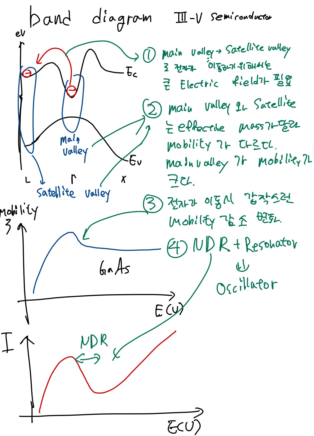 Gunn Diode는 3-5족 반도체 물질기반 소자로 전자가 Main valley라는 상태에서 Satelite valley라는 상태로 넘에갈때 생기는 NDR을 이용하는 Oscillator입니다.