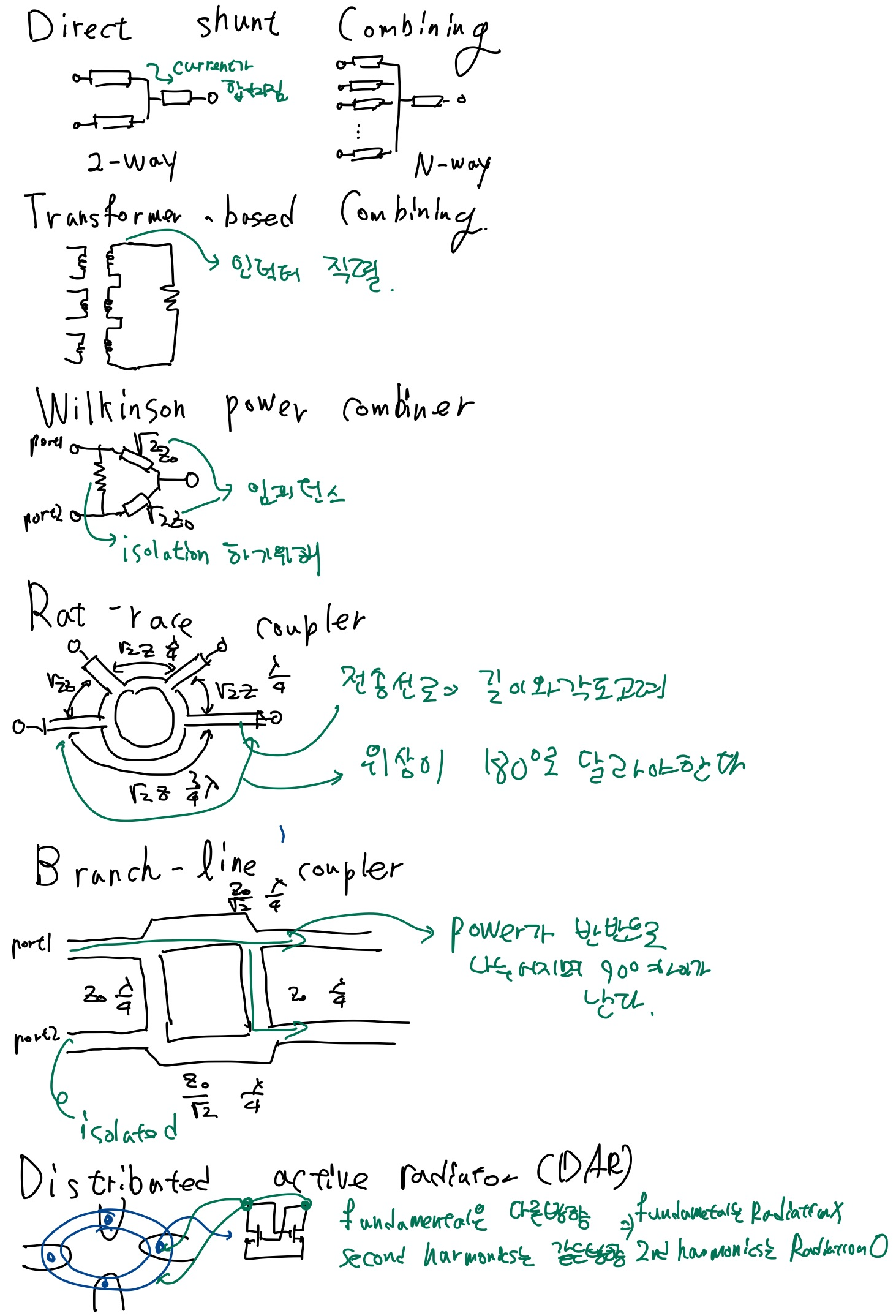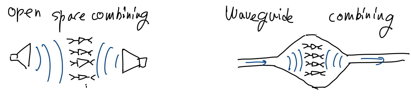 이는 Amplifier가 없을때 여러 oscillator를 combine하는 것으로 쉽게 말해 input power를 dividing시켜 나누어 각각 amplifier를 시킨뒤 다시모다 combine시키는 방법입니다. 이렇게 한다면 saturation output power보다 높일수 있으며 한개의 발진기 보다 더큰 파워를 얻을 수 있습니다.