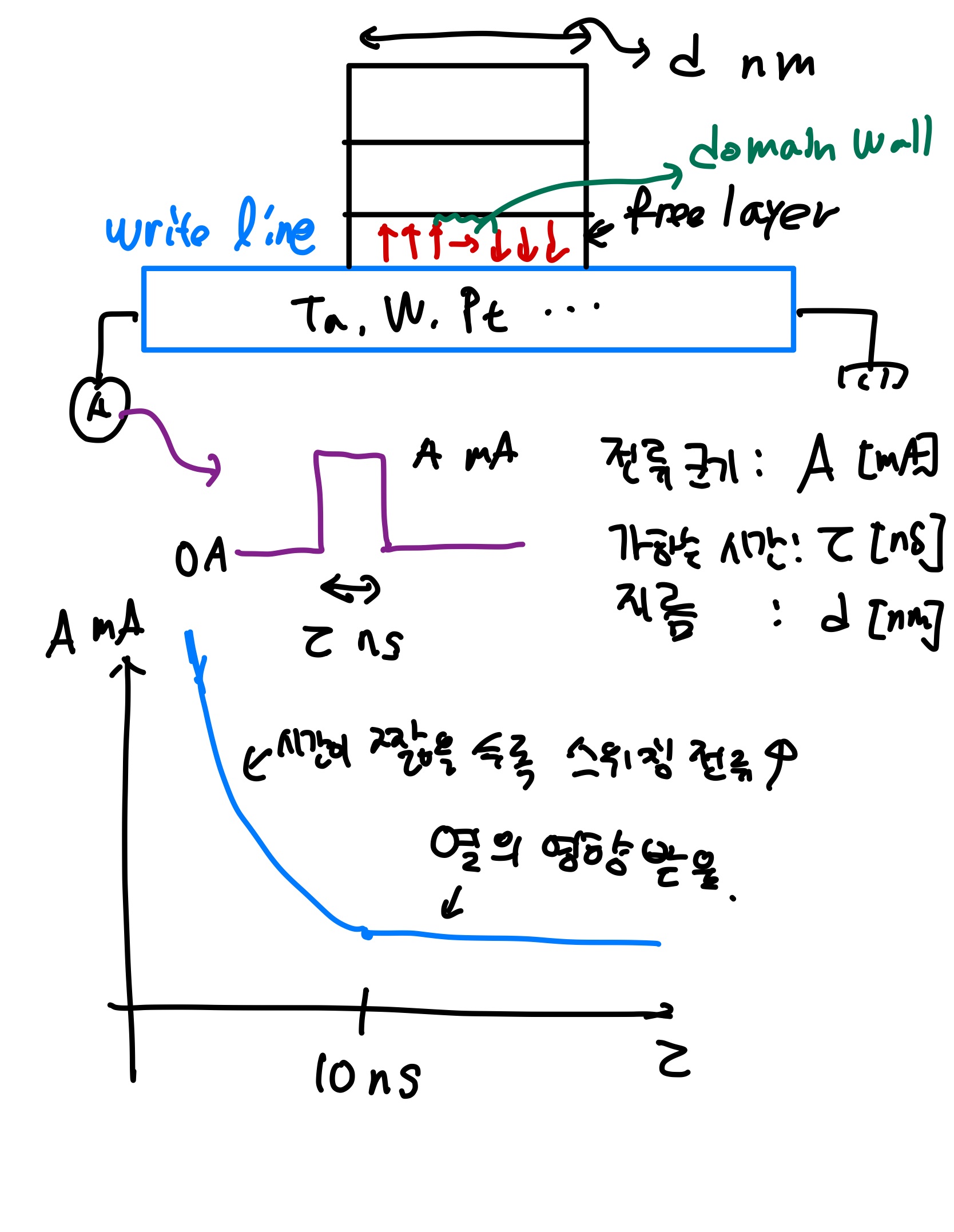 첫 번째로 아직 소자로 이용될 만큼 적은 전류로 write을 시키지 못합니다. 따라서 efficiency가 높은 방법을 찾아야 합니다.