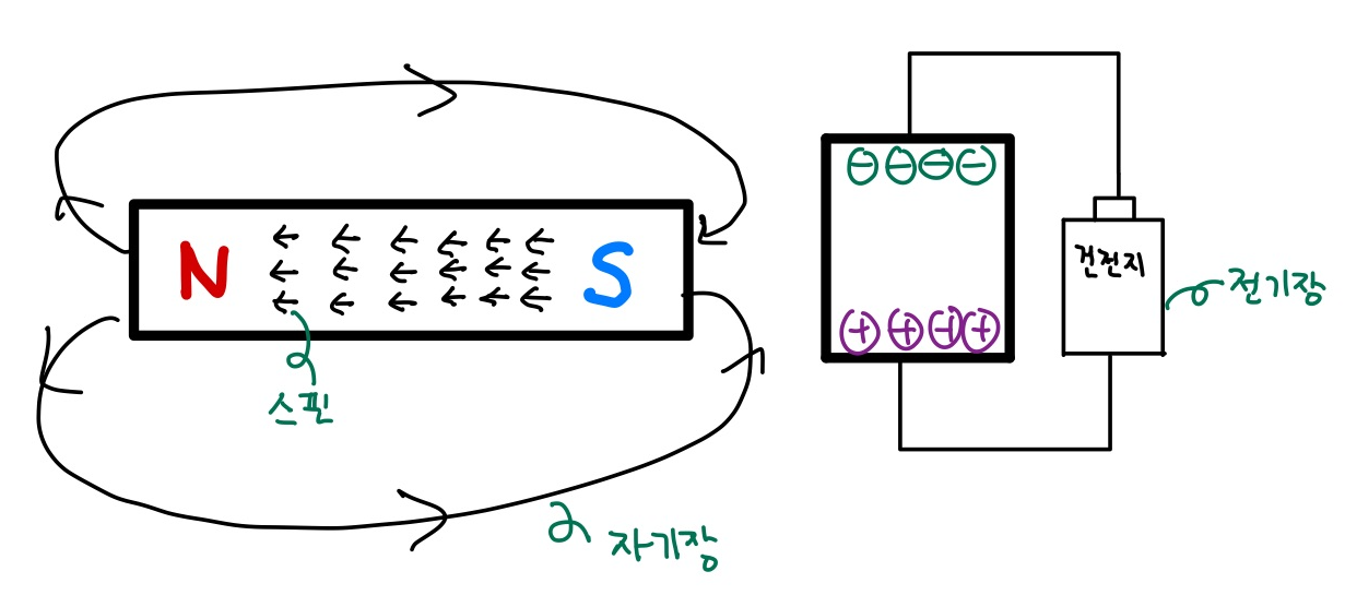 자석이 아닌 물질에 자기장을 가한다면 물질 내부에 있는 스핀(Spin)이 자기장 방향에 정렬됩니다. 정렬이 된다면, 자석과 같이 양극화를 형성합니다. 물론 자기장을 가하지 않는다면 다시 양극화를 잃게 됩니다.