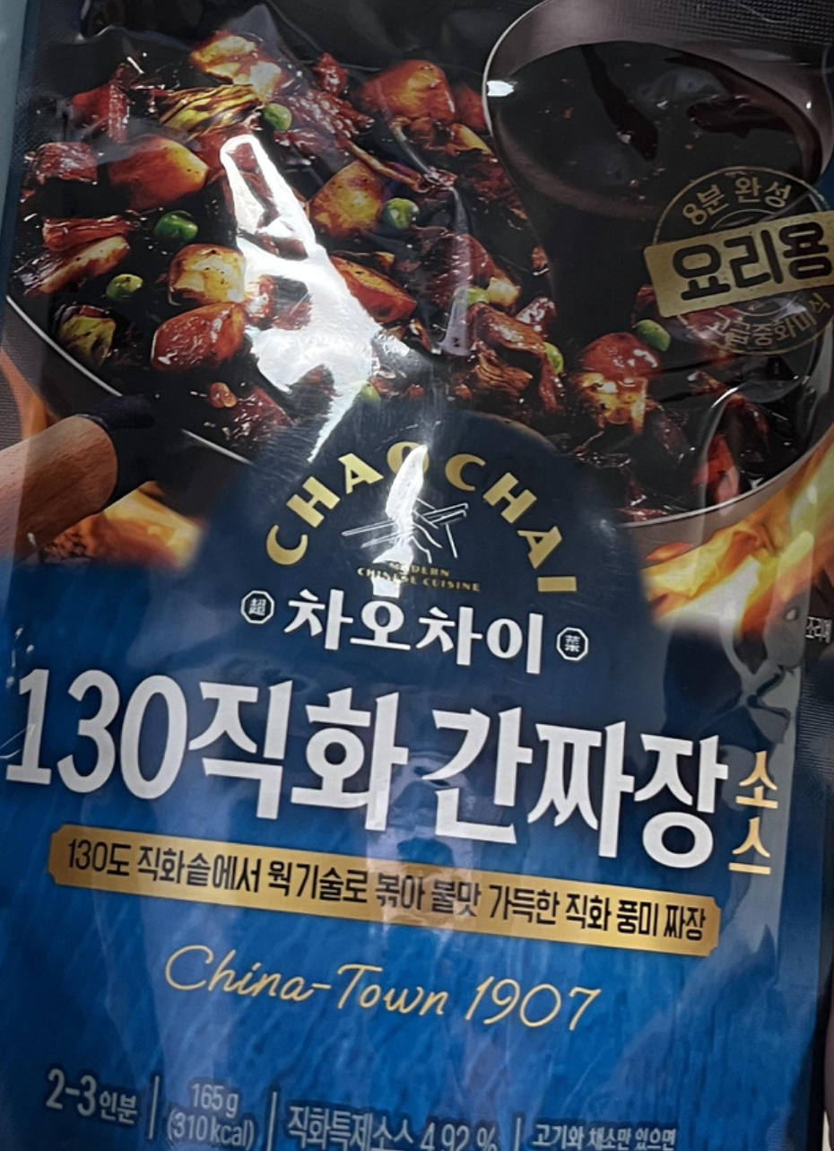 짜장소스는 사자표 춘장과 굴소스, 전분을 사용하려 했으나, 어랍쇼?! 마트에 마침 "차오차이 130 직화 간짜장"이라는 게 있었다. 함유량에 춘장도 많이 함유되어 있어서 이걸 사용했다.